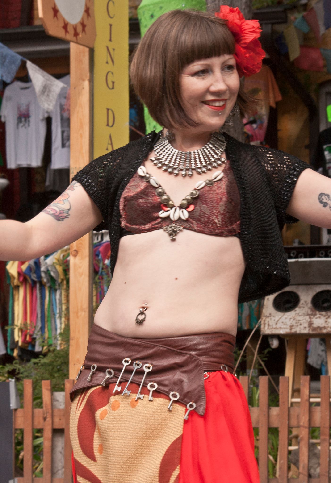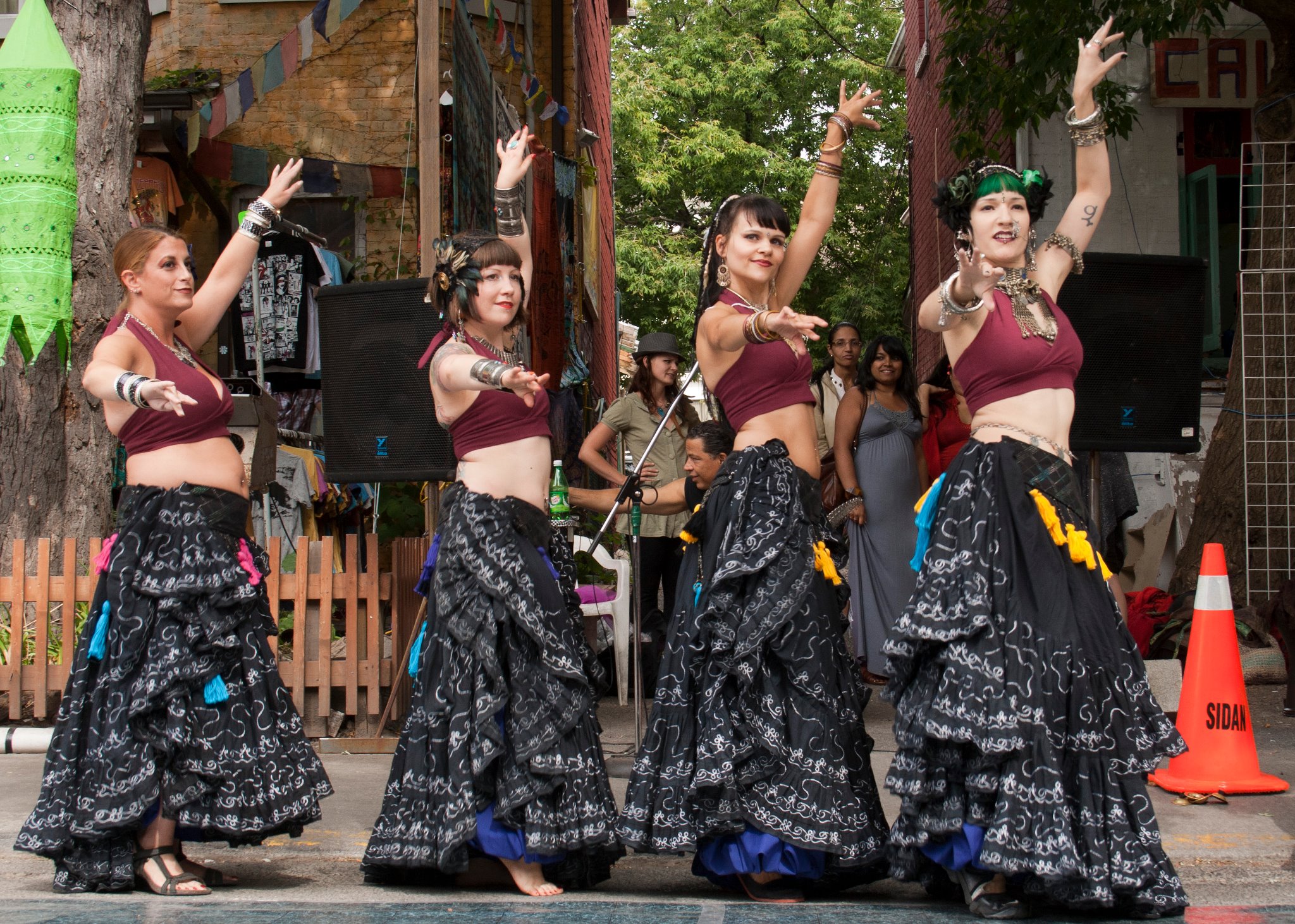 Here are some of the lovely photos taken by Ken Dobb last weekend..I love outdoor dance photos, especially with all the colourful background in the market. It was really an amazing show, where people can check out a variety of bellydance styles from the most traditional to the most abstract. And lovely costumes, many of them made by the dancers themselves. Talented women abound in this city, I tell you! Earlier in the day Sugar Shakers performed at Good Egg but I haven’t gotten any photos from that yet….so if you were there and took any please share!