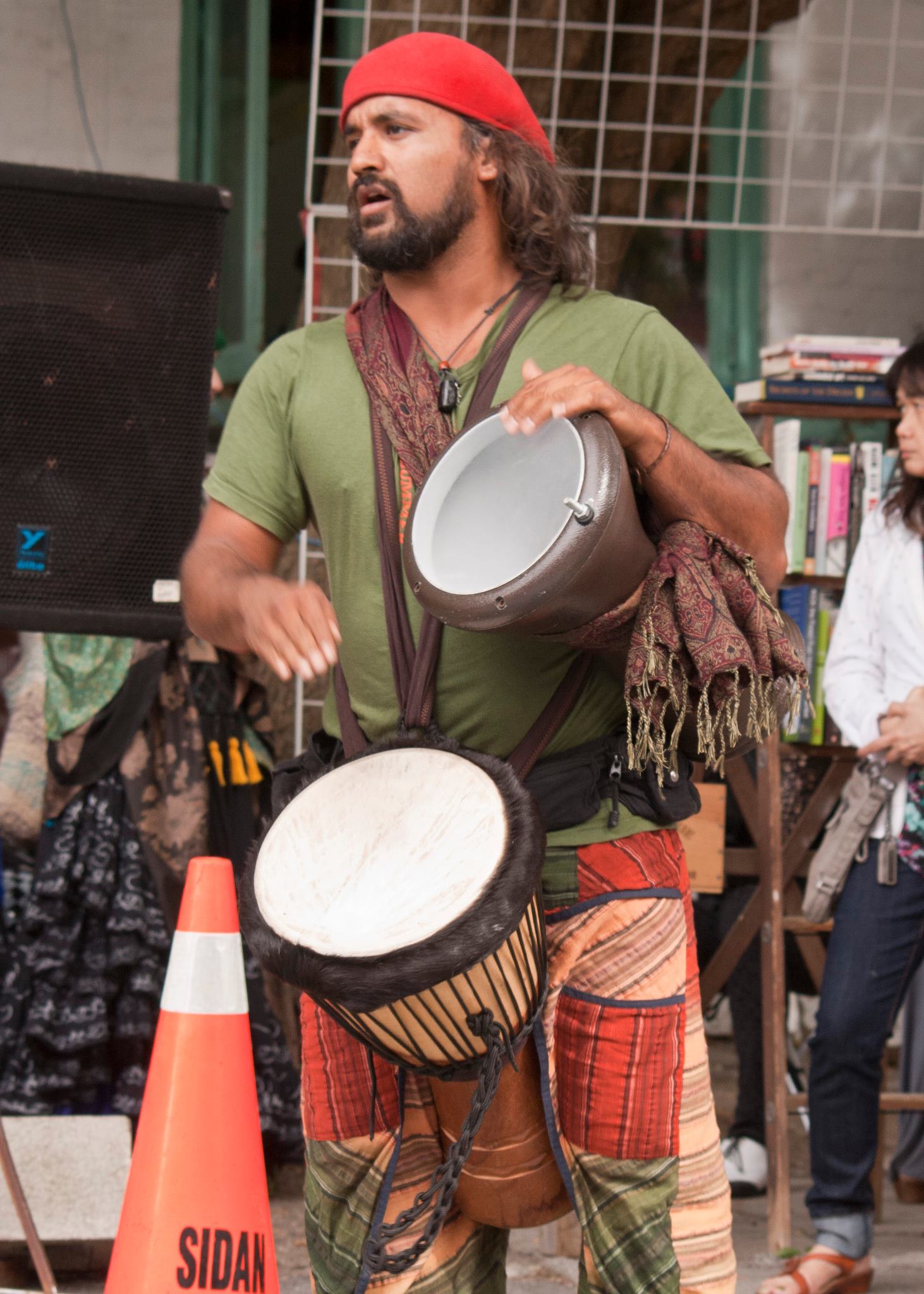 Jaash rocking an acoustic version of Raquay and the Caveman’s “Nubian.” Why yes it is a doumbek AND djembe strapped on him. Love it!