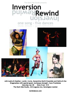 With the high of the performance in my wake, I’m re-focusing for the numbers that Serpentina has been working on for Inversion. It’s this Saturday at Darkside Studio and the theme is several artists take on the same song. Can’t wait to showcase our ATS version!